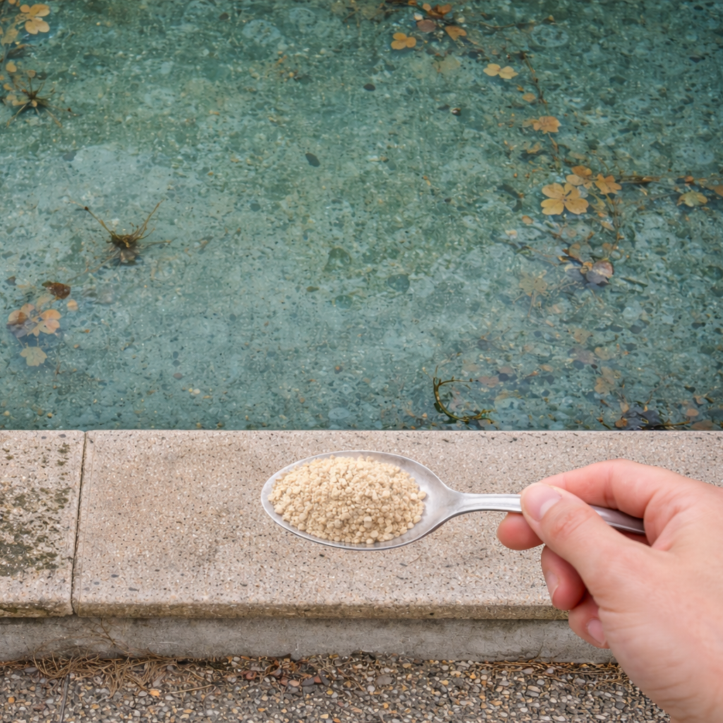 Disperser quelques grains de larvicide dans l’eau stagnante de la piscine toutes les 5 semaines.
